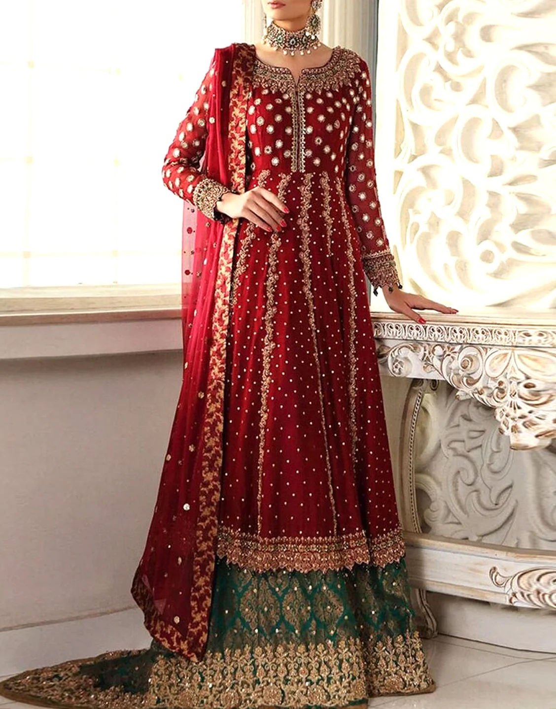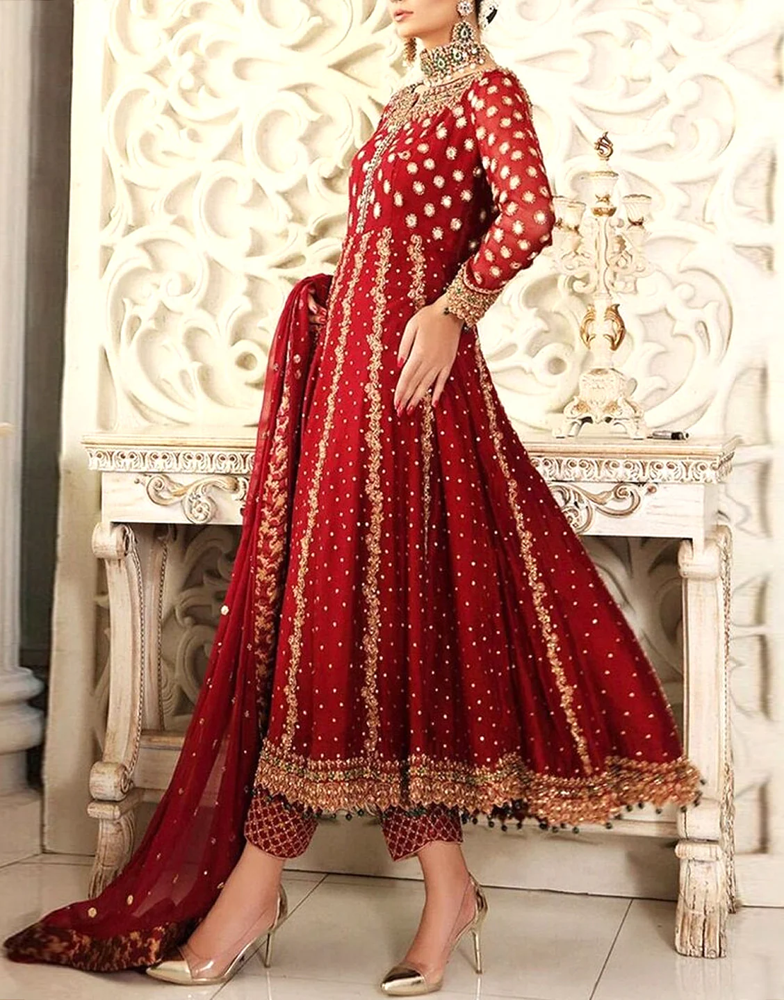 DressyZone.com offers best Mirror & Handwork Embroidered Chiffon Bridal Dress (DZ15143) price in Pakistan with fast shipping countrywide. Buy Mirror & Handwork Embroidered Chiffon Bridal Dress (DZ15143) online and pay cash at the time of order delivery with Free Shipping on all orders over Rs.3,000 in all major cities of Pakistan including Karachi, Lahore, Islamabad, Rawalpindi, Faisalabad, Sialkot, Hyderabad, Peshawar, Quetta and more.